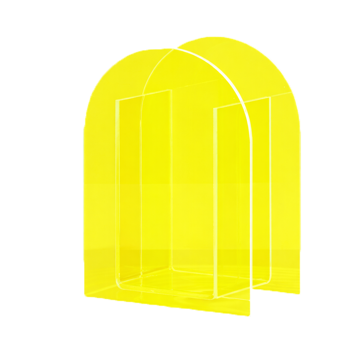 This yellow acrylic vase brings bold color and clean structure, anchoring florals in playful, fashion-forward, or pop-driven event designs.