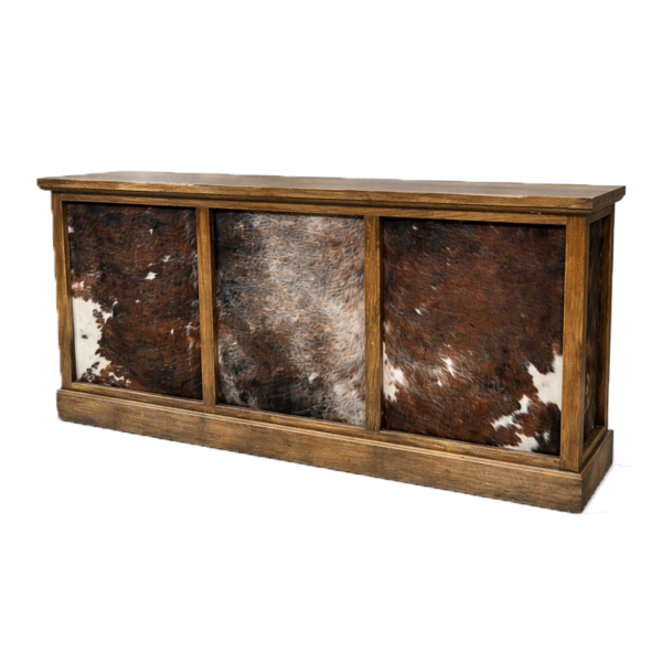 Industrial edge with a polished finish. This corrugated steel bar features a sleek black frame and is perfect for outdoor events, brand activations, or western-inspired bashes.