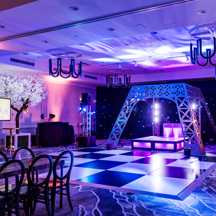An evening in Paris, brought to life. Inspired by the Eiffel Tower, this freestanding, four-sided structure features built-in lighting that sparkles like the real landmark. Create a high-impact focal point for entryways, performers, dance floors, stages, and unforgettable photo moments.