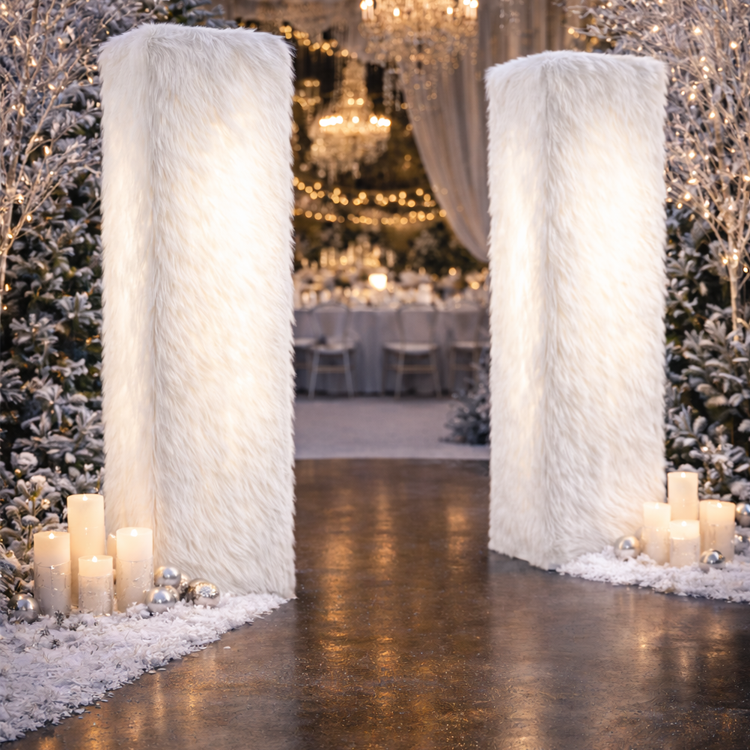 Glowing white fur pillars add texture, warmth, and playfulness to any space. Light them white for a classic look or switch up the color to add a punch of personality! Perfect as sculptural accents, lounge highlights, or atmospheric moments woven throughout an event.