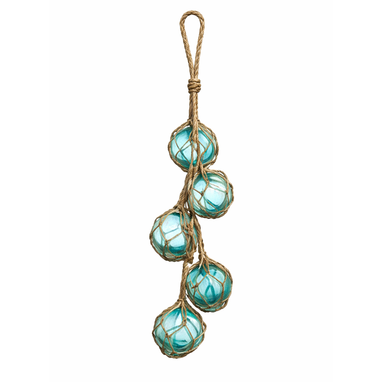 These hanging glass float clusters adds authentic coastal texture to nautical, seaside, or maritime-themed events.