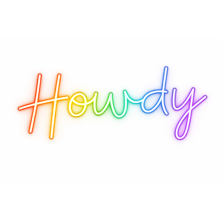 RGB Howdy neon sign energizes Western-themed events, festivals, and brand activations, creating a colorful focal point for photo moments, bars, lounges, and immersive guest experiences.