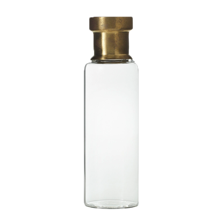 This tall glass bud vase with brass detail adds quiet polish, anchoring minimal, modern, or thoughtfully styled event moments.