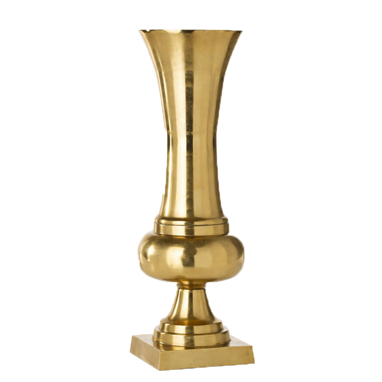 This tall gold floor vase commands the room, anchoring large-scale florals in formal, dramatic, or statement-driven event designs.