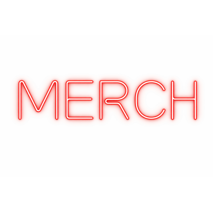 Red MERCH neon sign highlights merchandise areas at events, concerts, and brand activations, guiding guests, increasing visibility, and creating a bold retail or gifting focal point.