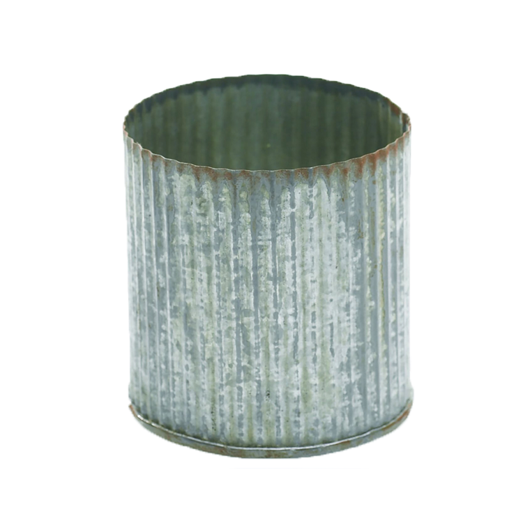 This ribbed metal pot brings texture and scale, anchoring florals in industrial, rustic, or casually styled event designs.