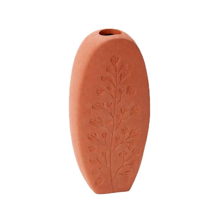 This ceramic bud vase features subtle carving, anchoring florals in earthy, handcrafted, or nature-inspired event moments.