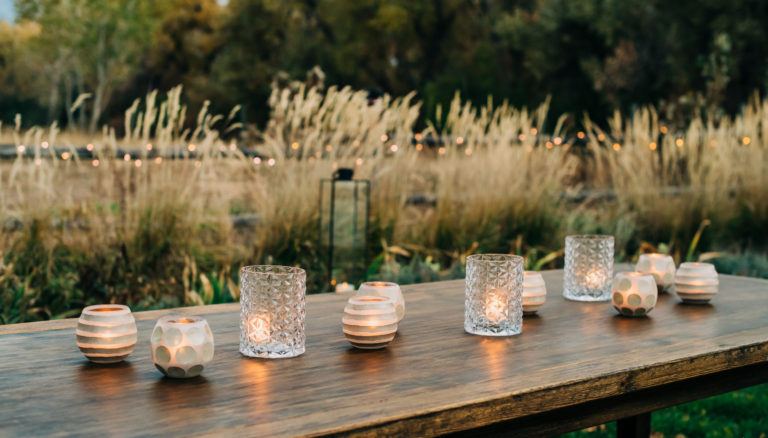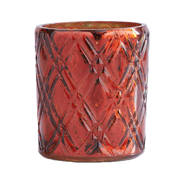 Red Mercury Glass Votive with Etched Criss Cross Pattern