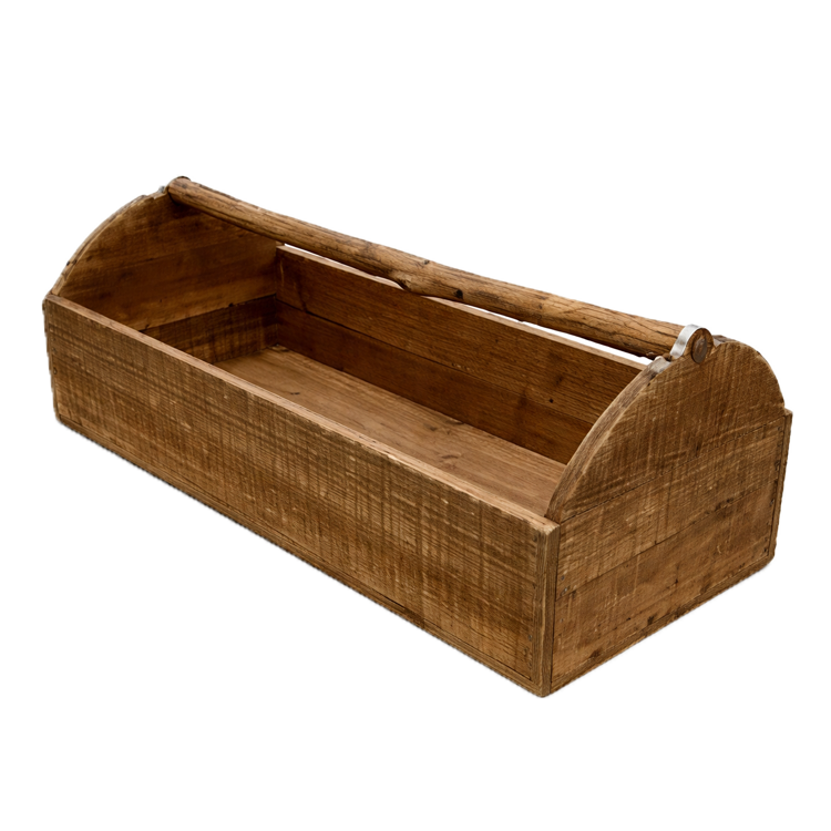 This rustic toolbox enhances farmhouse or heritage-themed events with natural texture and utilitarian appeal.