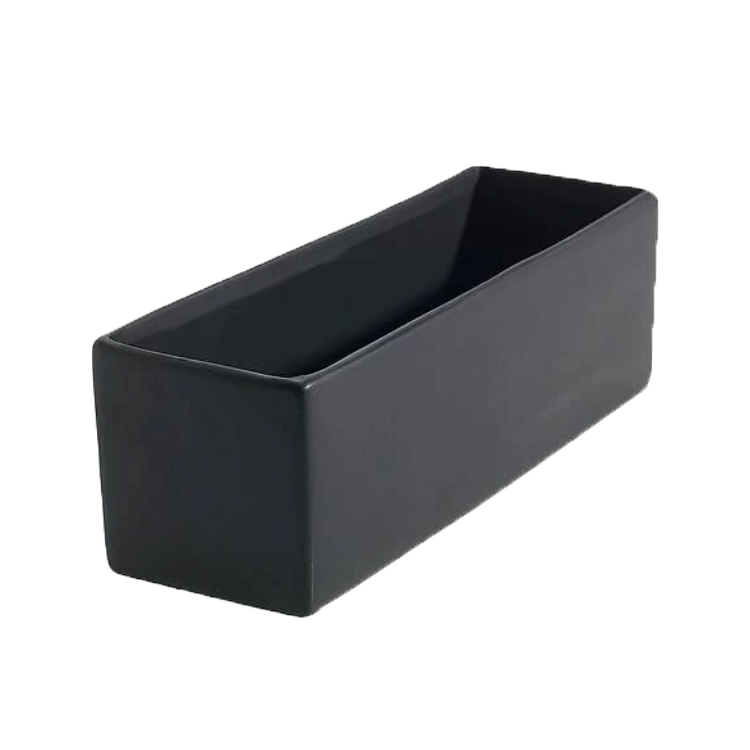 A sleek matte black rectangular planter delivers a modern, architectural look, ideal for minimalist events, linear arrangements, and contemporary tablescapes.