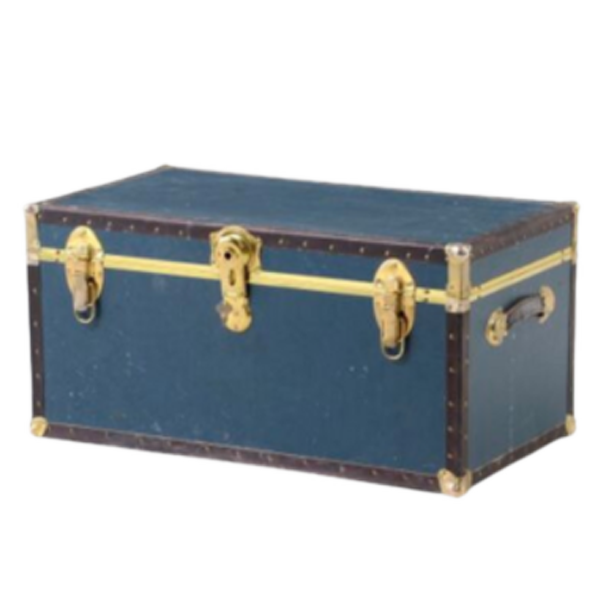 Classic trunks with nailhead detailing and brass latches create a sense of history.