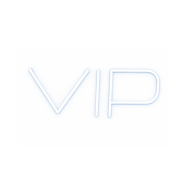 Bright white VIP neon sign defines exclusive event entrances, lounges, and brand activations, guiding guests, elevating atmosphere, and creating clear visual hierarchy for premium experiences.