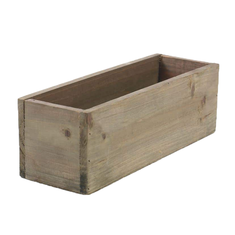 A rustic wood planter introduces warmth and texture to events, perfect for organic arrangements, western inspired designs, and relaxed, nature-forward settings.