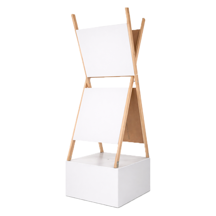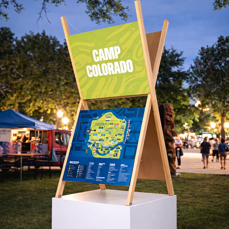 A bold, freestanding X-frame designed for large-scale wayfinding and branding moments. Standing 14 feet tall, this sculptural structure anchors festivals, outdoor, and large-scale events with customizable panels for maps, schedules, or sponsor graphics, offering both visual impact and practical guidance for guests.